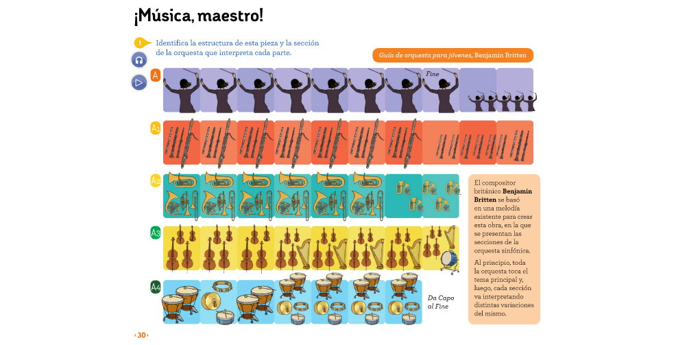 Música maestro. Pág. 30. Identificamos la estructura de la pieza musical.